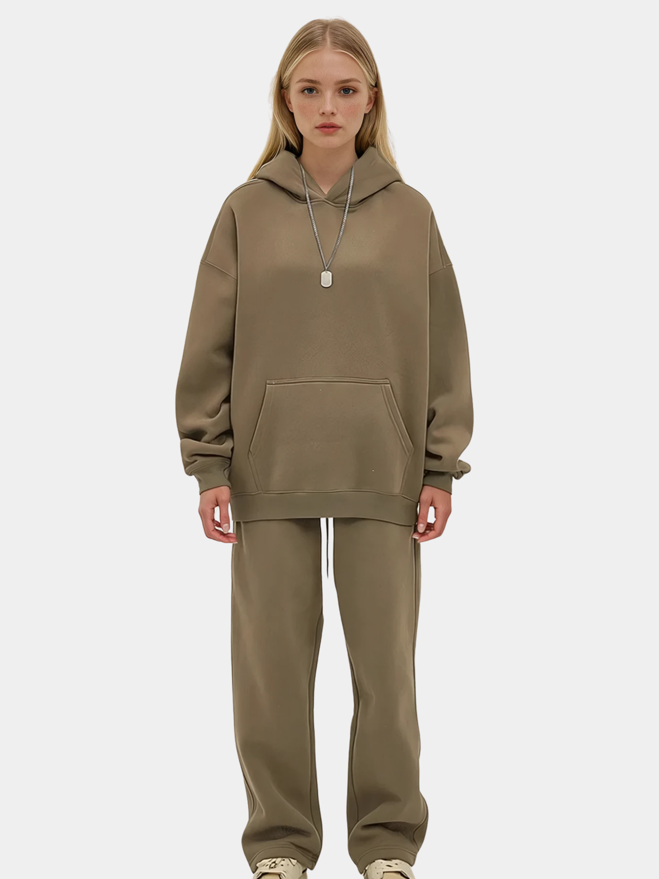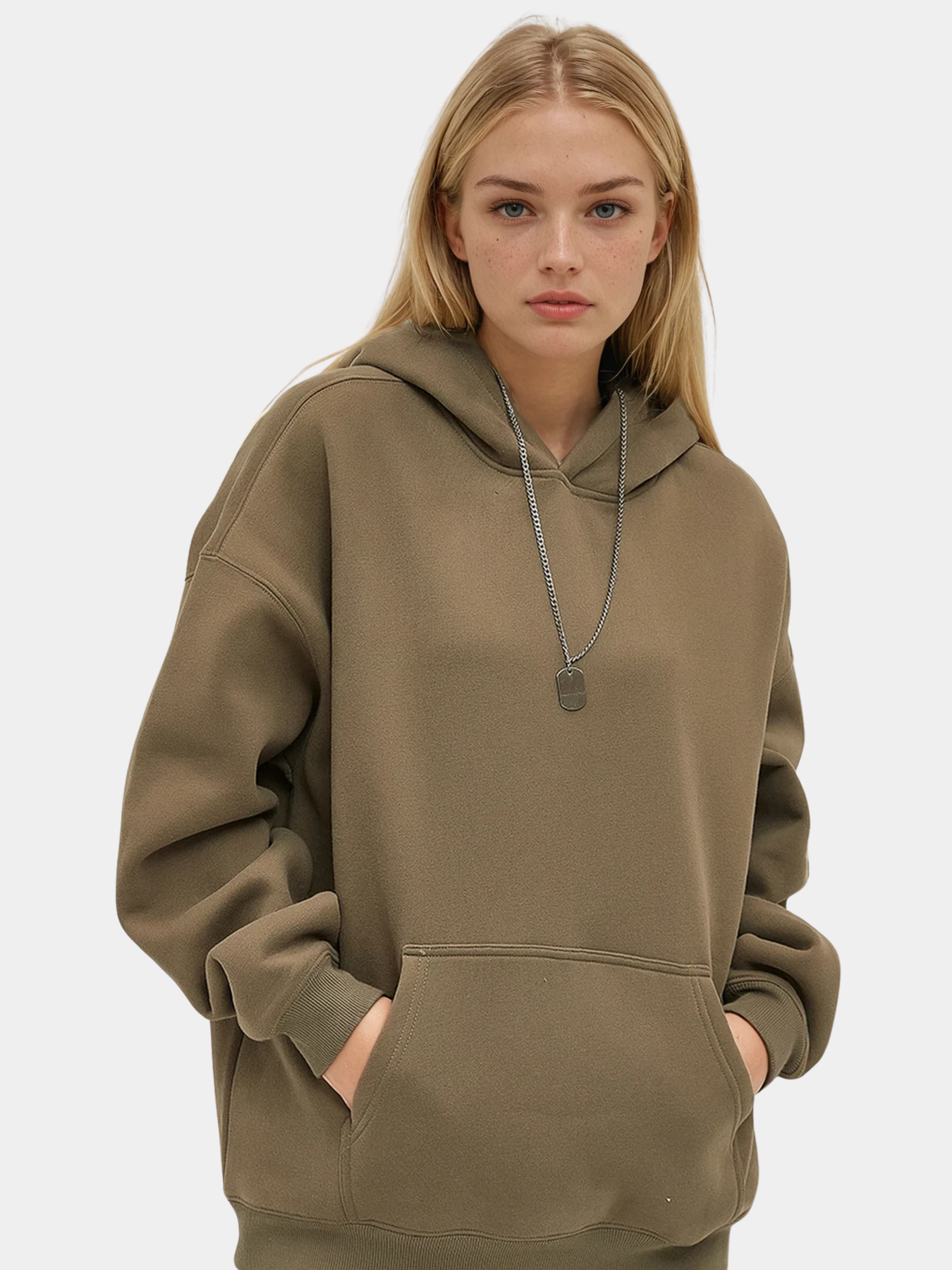 Olivedown Hoodie channels the calming tones of earth with a muted olive hue. Its oversized silhouette and breathable texture wrap you in ease, while its grounded look speaks softly but confidently.