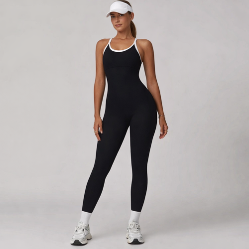Beyaz Bra Detaylı İnce Askılı Tulum